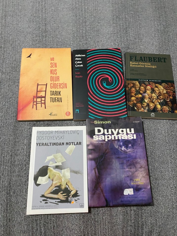 Tarık Tufan, Dostoyevski, Flaubert ve diğer yazarların eserlerinden oluşan beş kitaplık edebiyat seti. Kitaplar arasında 'Ve Sen Kuş Olur Gidersin' ve 'Yeraltından Notlar' bulunuyor. Lütfen fiyat sorunuz.