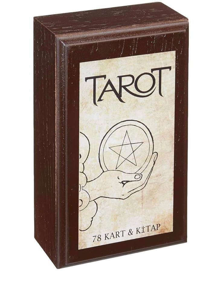 78 tarot kartı ve bir kitap içeren, ahşap kutuda sunulan tarot kartları ve kitap seti. Ben aldım 5 6 yıldır dolabımda duruyor bir türlü öğrenemedim. Herhangi bir kusuru yok sadece kartların kenarlarındaki pvc pürüzsüz değil artık yıllar geçtiği için.