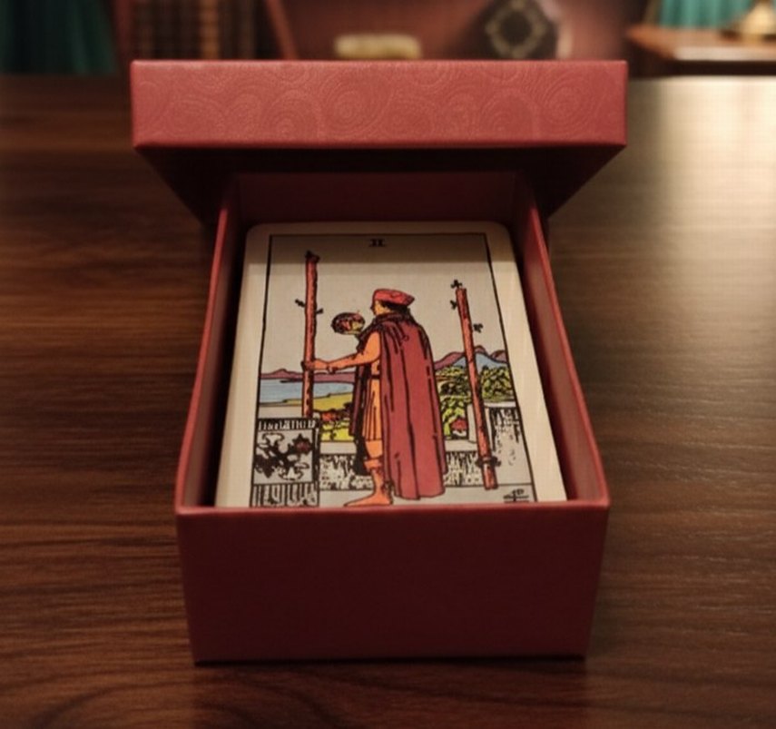 Kırmızı kutuda sunulan, fal ve astroloji meraklıları için detaylı çizimlere sahip tarot kartları seti. 10x7 cm