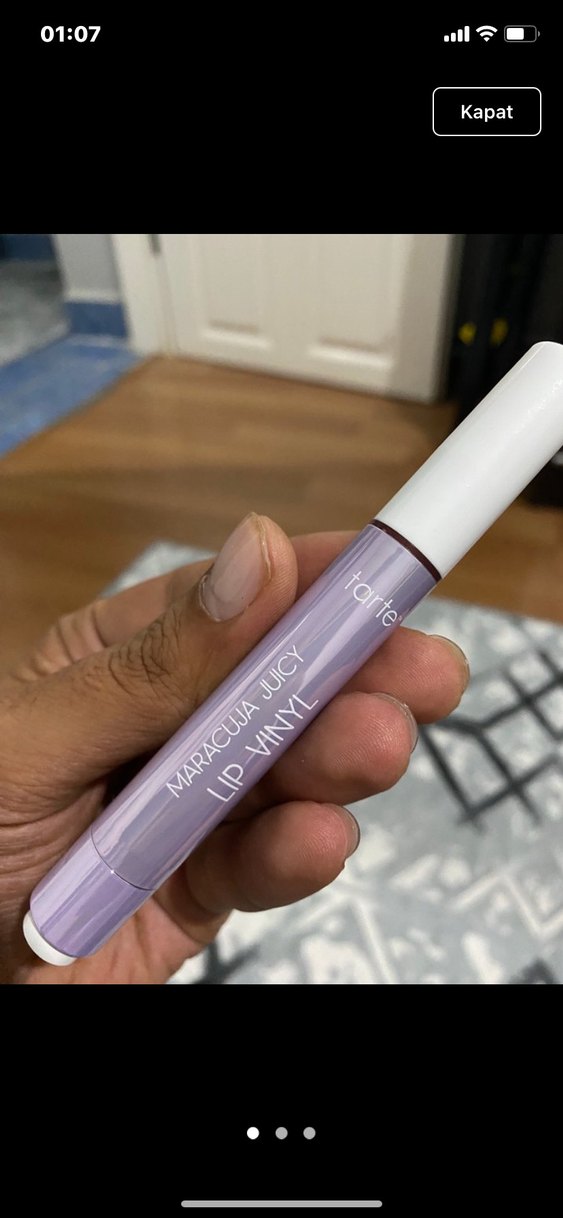 Tarte Maracuja Juicy Lip Vinyl, pastel bej renginde, dudaklara parlak bir görünüm sağlar. Şık açık mor tüp ve beyaz kapak ile sunulur. Sephoradan hediye geldi 1 kere denedim. Güncel fiyatı 2 küsür. Uyguna veriyorum.
