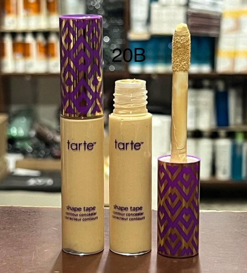 Tarte Shape Tape kontür kapatıcı, açık bej 20B tonu, pürüzsüz kapatıcılık ve hassas aplikatör sunar.