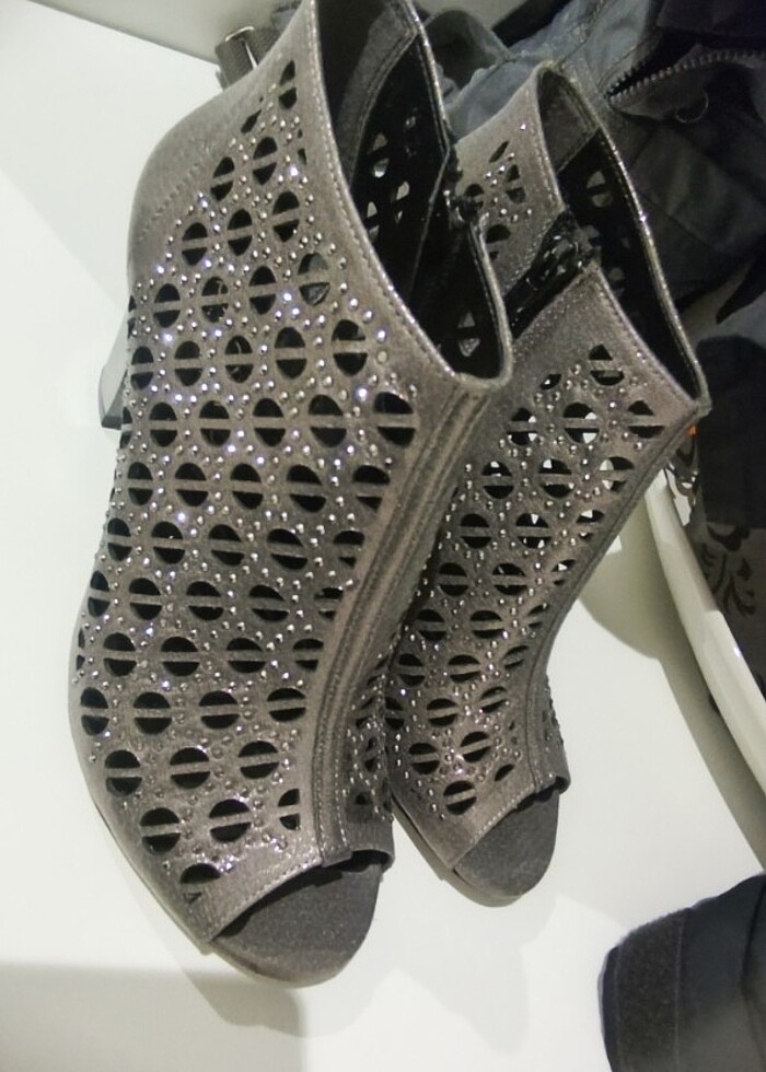 Gümüş gri, burnu açık tarz bot. Bir kere kullanıldı.