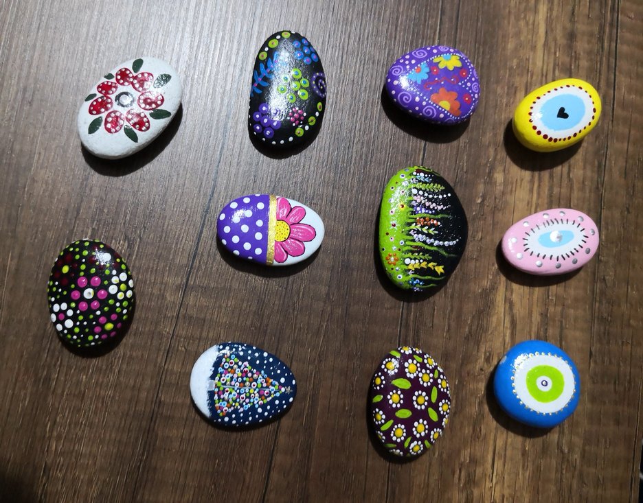 Ell boyaması renkli taş magnetler. Her parça özgün desenler ve canlı renkler sunar. Deniz taşlarından mıknatıslı el boyaması taş tasarım magnetler. 11 adet olup.,toplu olarak satılacaktır. Fiyat 11 adet fiyatıdır.