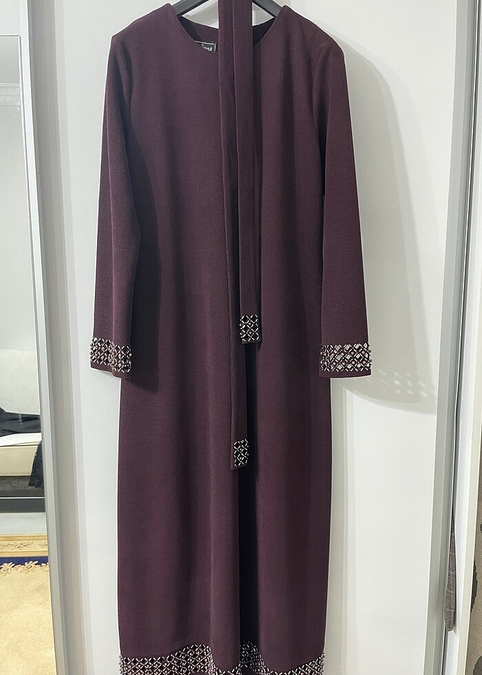 46 beden elbise mürdüm taş detaylı kemeri mevcut