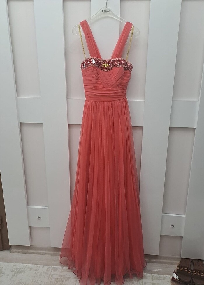 Uzun boy grapeli askılı elbise 1 kez giyildi