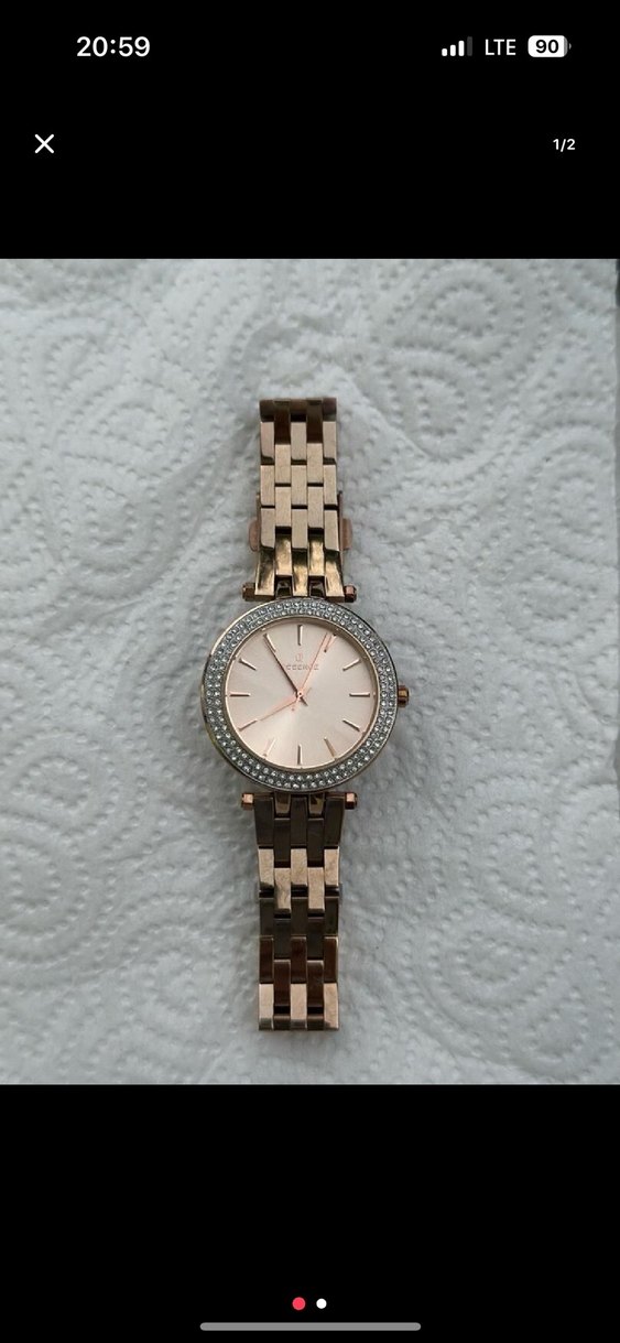 Hiçbir deformesi yoktur 1 tane taşı bile düşmemiştir resimde de görüldüğü gibi. Essence orijinal üründür. Gold renktir.