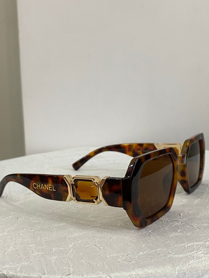 Taş Detaylı Kahverengi Chanel Güneş Gözlüğü