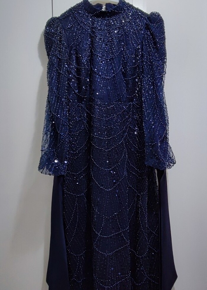 Taş detaylı lacivert elbise