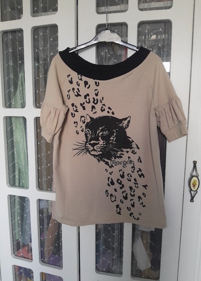 Taşlı leopar desenli bluz m_L uyumlu belli olmayan minik tiftiklenmesi var