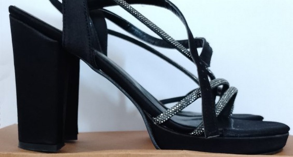 taş Detaylı Siyah Desenli topuklu ayakkabı