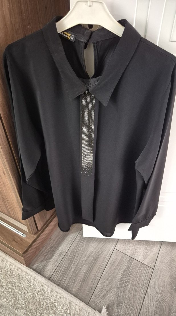 Taş Detaylı Siyah Uzun Kollu Gömlek