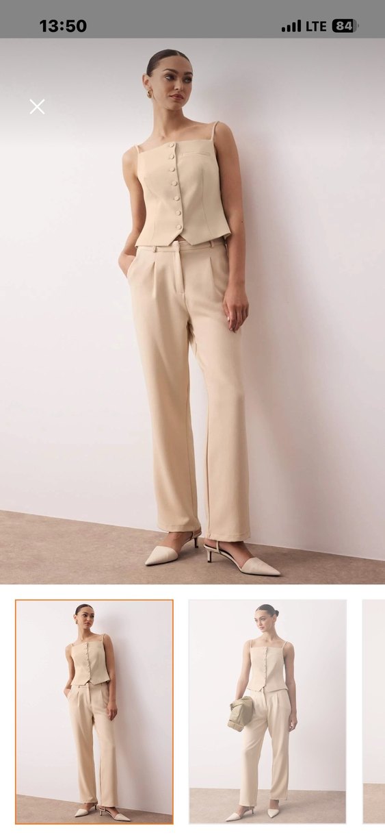 Taş Düz Kesim Geniş Paça Pileli Dokuma Kumaş Pantolon