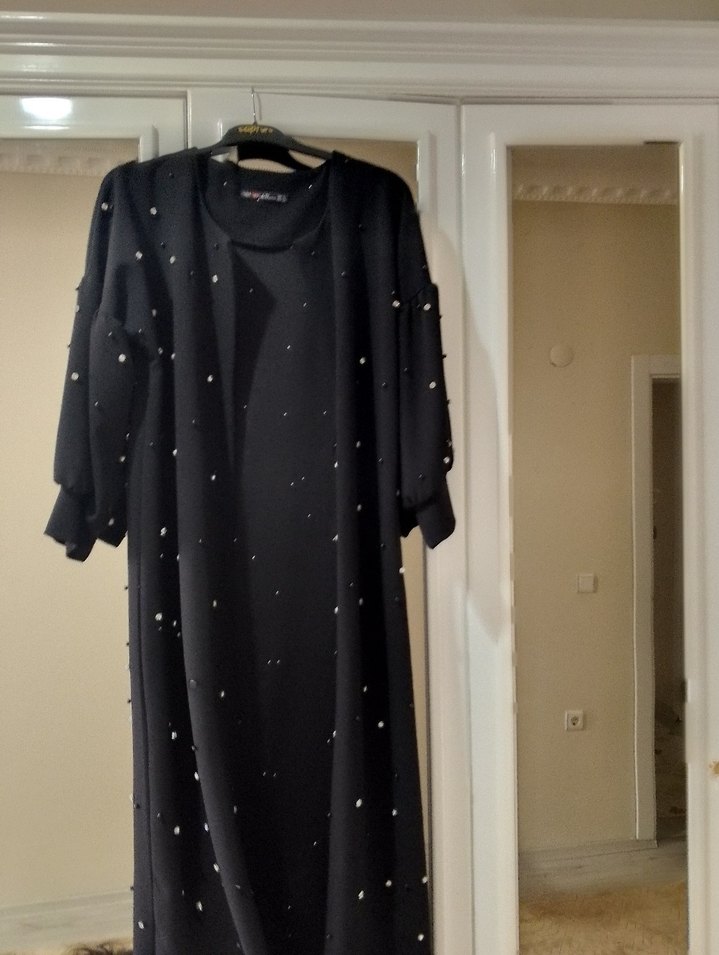 taş işleme Detaylı Siyah Uzun Kadin hırka