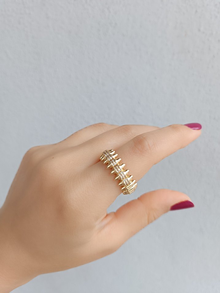 altın renkli bu çağdaş yüzük, minimalist tarzı benimseyen moda tutkunları için tasarlandı.