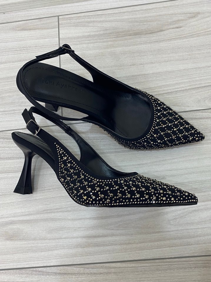Taş İşlemeli Siyah Stiletto
