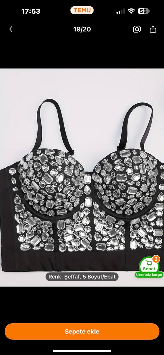 Siyah straplez, taş işlemeli ve askılı kısa büstiyer. Sentetik kumaştan, rock punk tarzında ve parti için uygun, vücuda oturan model.