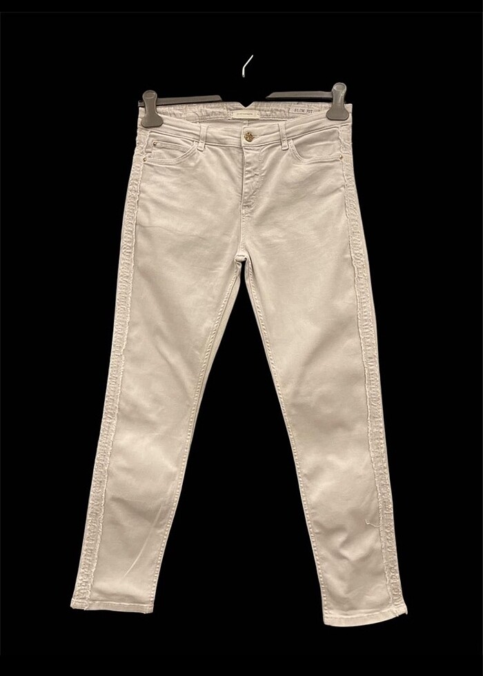 Taş rengi pamuk kumaştan denim pantolon bel 40cm, basen 50cm, boy 100cm. Az kullanılmış çok iyi durumda