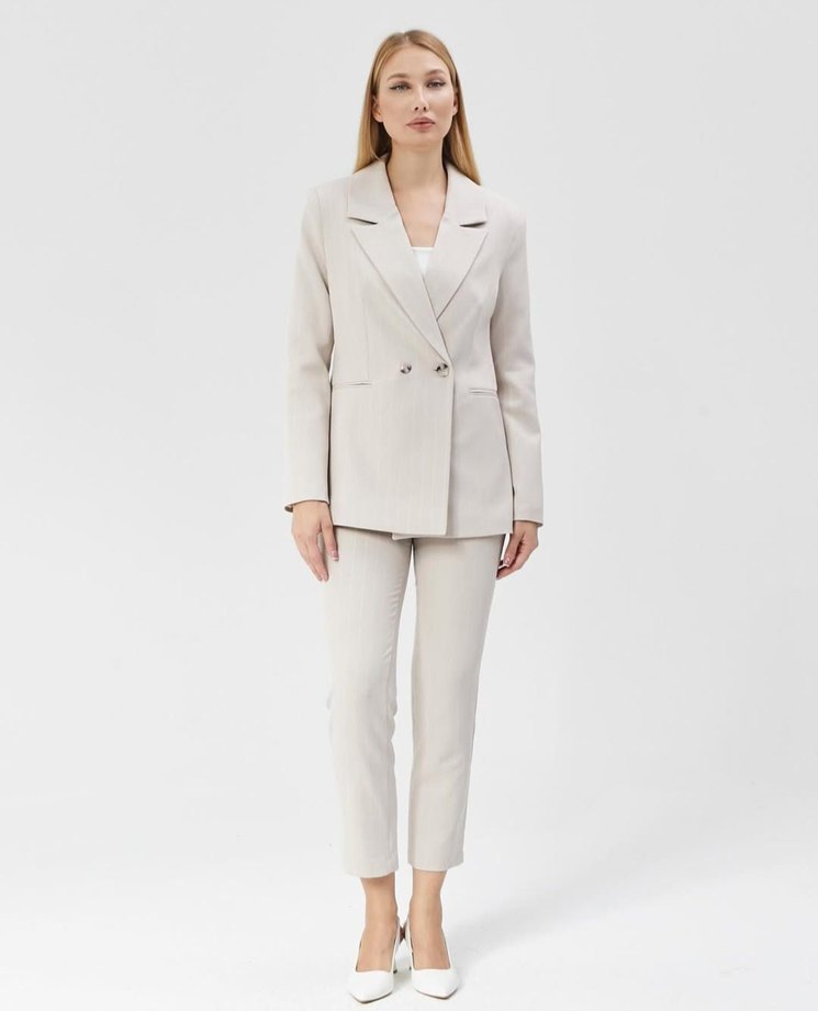 Taş Rengi Kadın Ofis Blazeri, Normal Boy, Kendinden Cizgili
