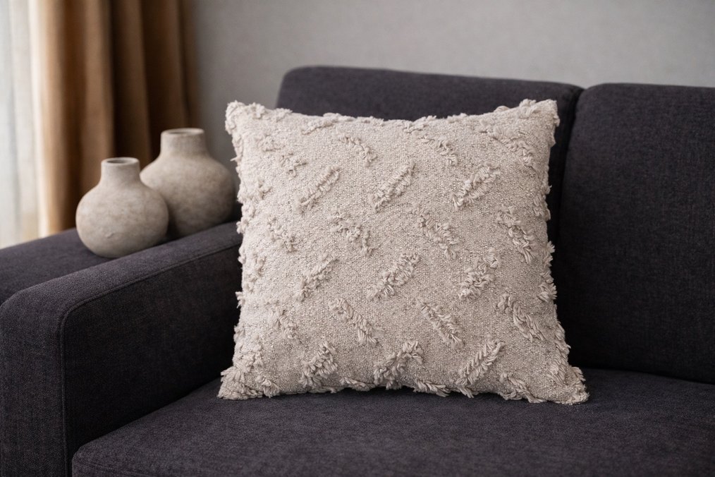 Nakış detaylı taş rengi renkli bohem tarzda yastık, oturma alanlarına doku ve rahatlık katar. ️
