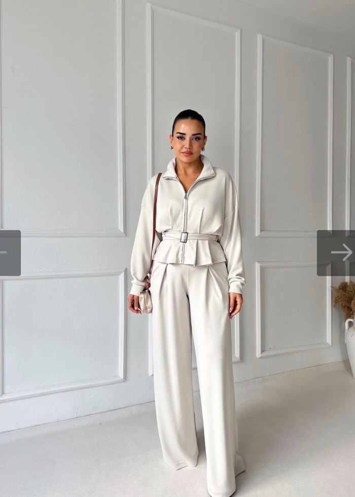Taş kemerli kadın takım kesik yaka ve uzun kollu tasarımıyla şık bir görünüm sunar. Regular fit ve uzun paça pantolonlu, oyşho kumaştan yapılmıştır.