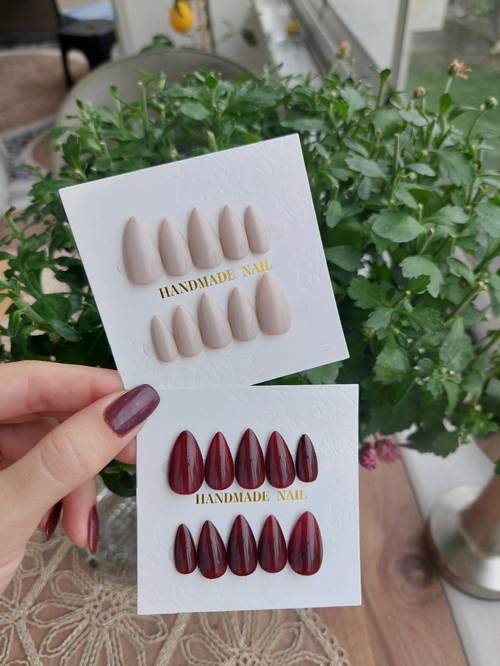 Taş Rengi ve Bordo Jel Takma Tırnak