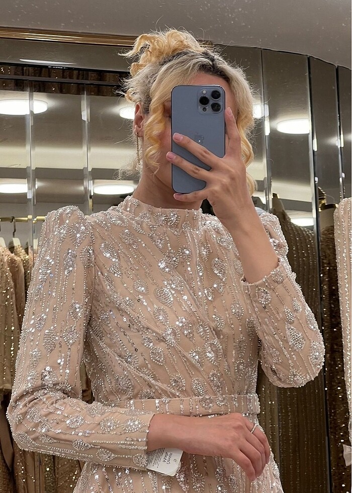 TAŞ RENK ABİYE Modelli taş detaylı abiyemiz 38-44 beden arası mevcuttur