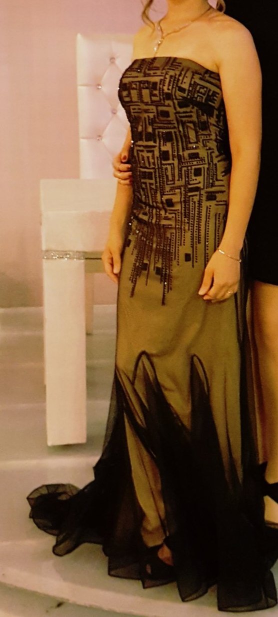 Taşlı abiye 36/38 bedene uyumludur straplez istenirse aşkı takılabilir. Askısı mevcut değildir. İç kısmı ten renginde üzeri tül balık abiye