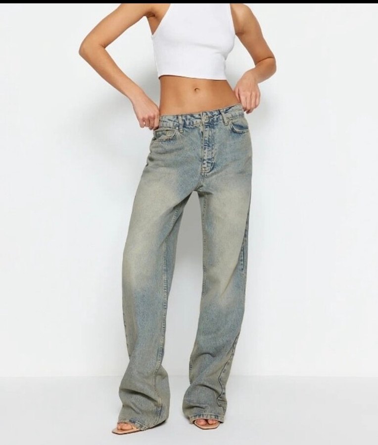 Taş ve mavi renk tonlarında, bol kesim midi uzunlukta, desen içermeyen denim jean. Günlük kullanıma uygun, rahat ve şık sokak stili pantolon.