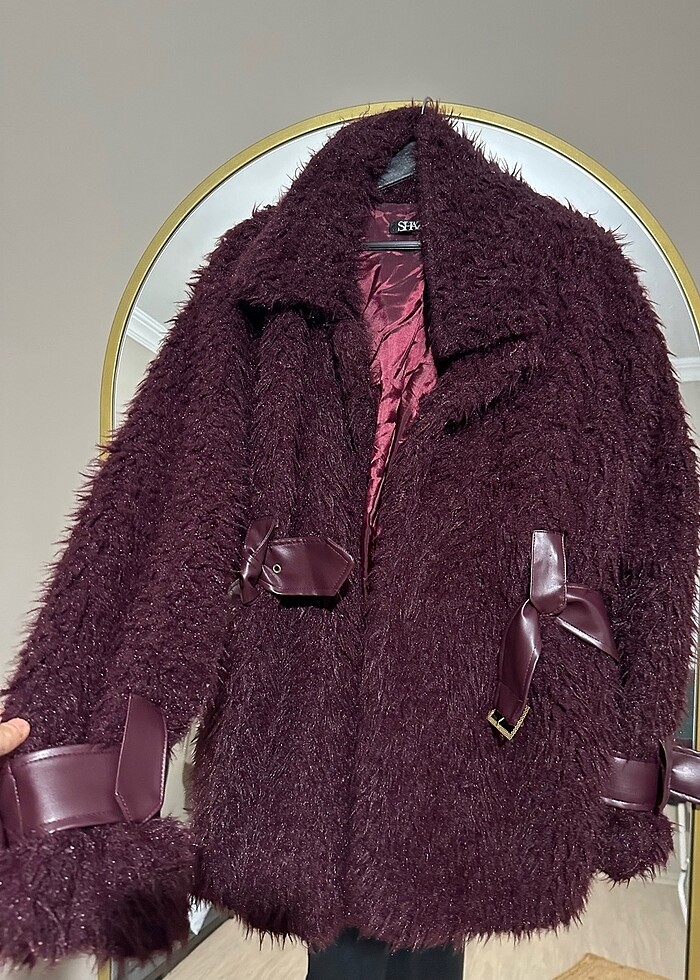 Tasarım bordo peluş mont
