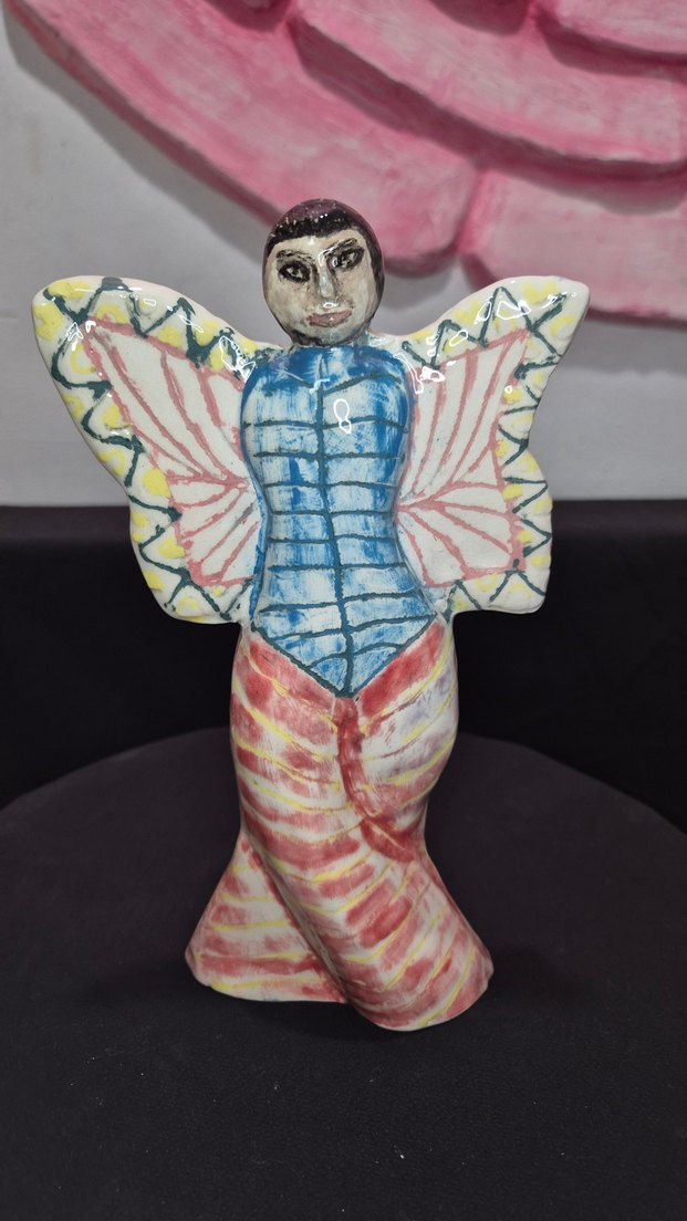Renkli kanatlara sahip, mavi, sarı, pembe ve kırmızı tonlarda boyanmış seramik insan figürini. Kendi atölyemizde tamamen el emeğiyle üretilmiş, 22 cm boyunda sanatsal bir dekorasyon objesidir. Özgün kanat detayları ve canlı renk paletiyle çocuk odalarından salonlara kadar her mekana sofistike bir hava katar. El boyaması olduğu için her ayrıntısı eşsizdir ve seri üretim ürünlerde bulunmayan bir karaktere sahiptir. Hem koleksiyonluk bir parça hem de özel bir hediye arayanlar için idealdir. Özenle paketlenerek hızlıca kargoya teslim edilir.