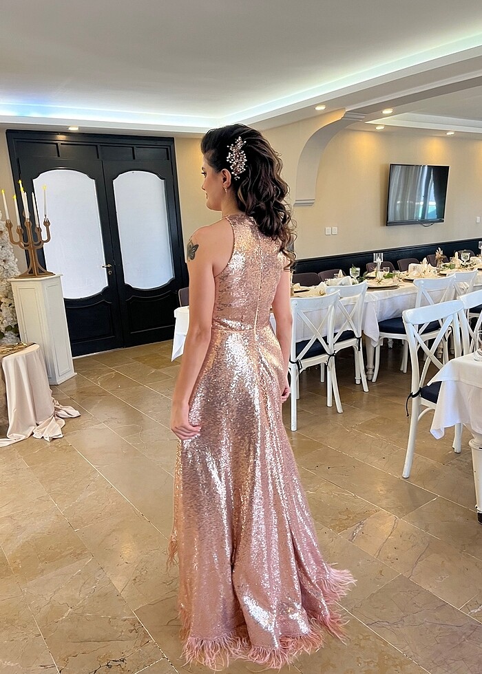 Ozel dikim. 161 boyum ve 49 kiloyum. Nişanimda giyindim. Roze gold pembesi rengi