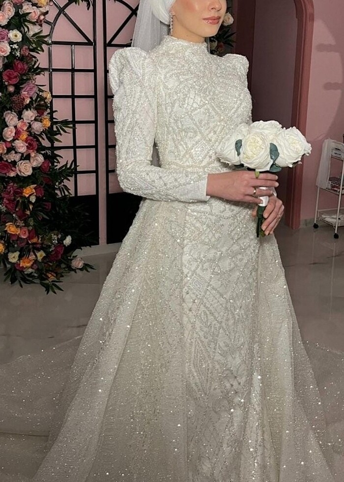Özel tasarım demonte kuyruklu balık model tesettür gelinlik boncukları el işlemesi çok özenerek yaptırdığım bir model özellikle ışık altında büyüleyici duruyor gören herkes bayıldı içinde prenses gibi hissediyorsunuz :) yanında taşlı taç ve kısa duvağını hediye ediyorum. Kiralık değildir sadece satılık.