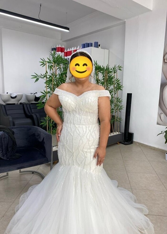 Özel tasarımdir. Sadece 2saat nikahta giyildi.44 bedenle uyumludur.boyum 1.60 cm. Arkasındaki ipler sayesinde istenildiği gibi ayarlama yapılabilir. Kendinden korselidir.Kırmızı duvak, uzun ve kısa duvaklarla birlikte verilecektir. #gelinlik #düğün #balıkmodel #kına #nikah #abiye #tasarim