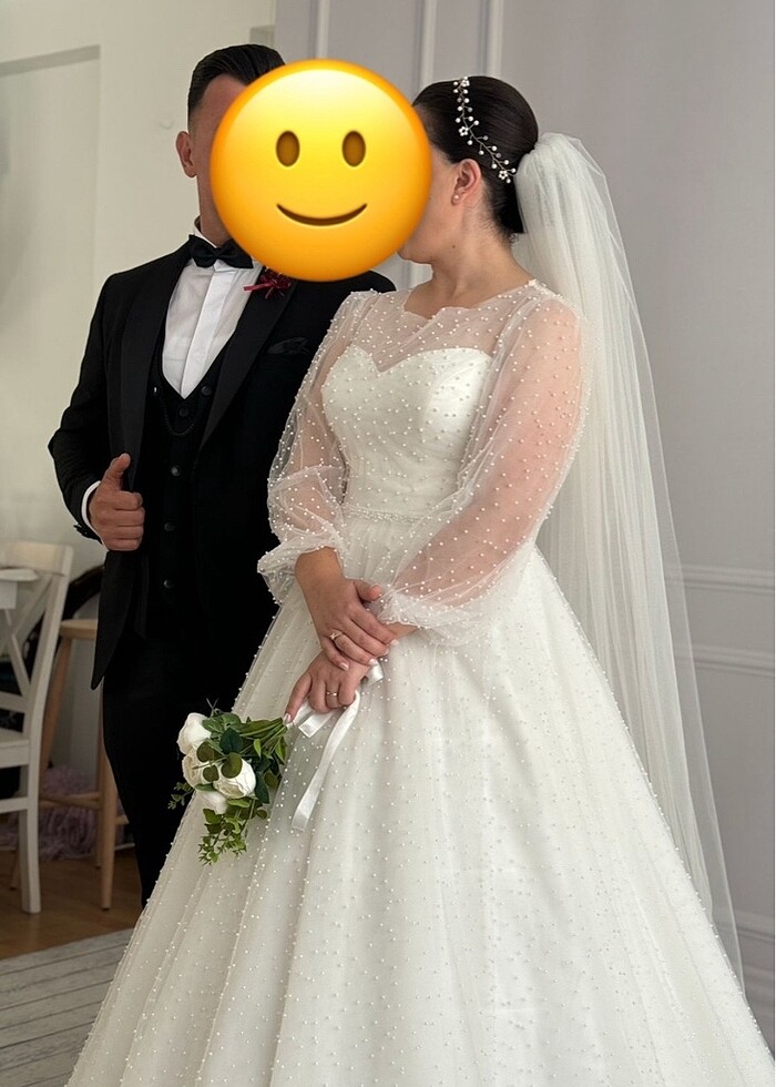 Hayalimdeki gibi bi gelinlik tasarlayıp diktirdim özel dikimdir. Duvagı düz ve uzun duvaklı gönderim yapılacaktır. Sadece gelinliği teslim alırken yaka kısmını kontrol etmediğim için ayrıntıyı farketmedim fotoğraflarda belirttim zaten kesik bir görüntü var ama ben öyle kullandım çok sorum teşkil etmedi ama ufak bir tadilatla düzeltilir. Tarlatanı içine dikili. Ben 28 bin tl ye aldım 2024 te fiyatı uygun tutmaya çalışıyorum. Ciddi alıcılar iletişime geçerse detaylı video ile gösteririm. Trabzon içinde olanlarla birebir görüşme sağlarım. 38-42 ye kadar uyumlu