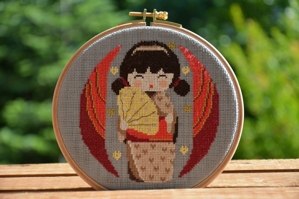 Kokeshi Kanaviçe Pano kasnak çapı 13 cm #japonya #kanaviçe #pano #kokeshi #kokeshidoll #momiji #tablo #duvarsüsü #dekorasyon #yelpaze #japon