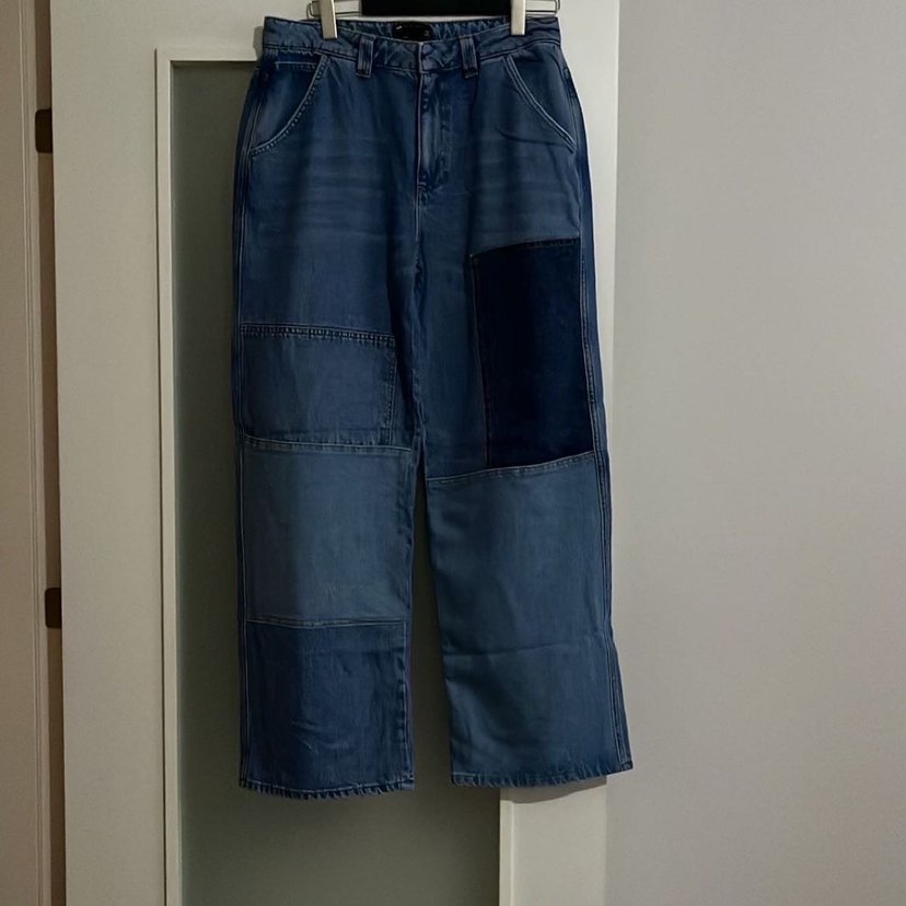 Enfes bir palazzo kot pantolon, önü blok geçiş detaylı,tüm detayları fotoğraflarda mevcuttur,bel kemer 44 cm, boyu 111 cm,basen 63 cm, iç bacak boyu 79 cm,kemerden ağ bölgesine 32 cm,güncel durumu bir kere kullanıldı