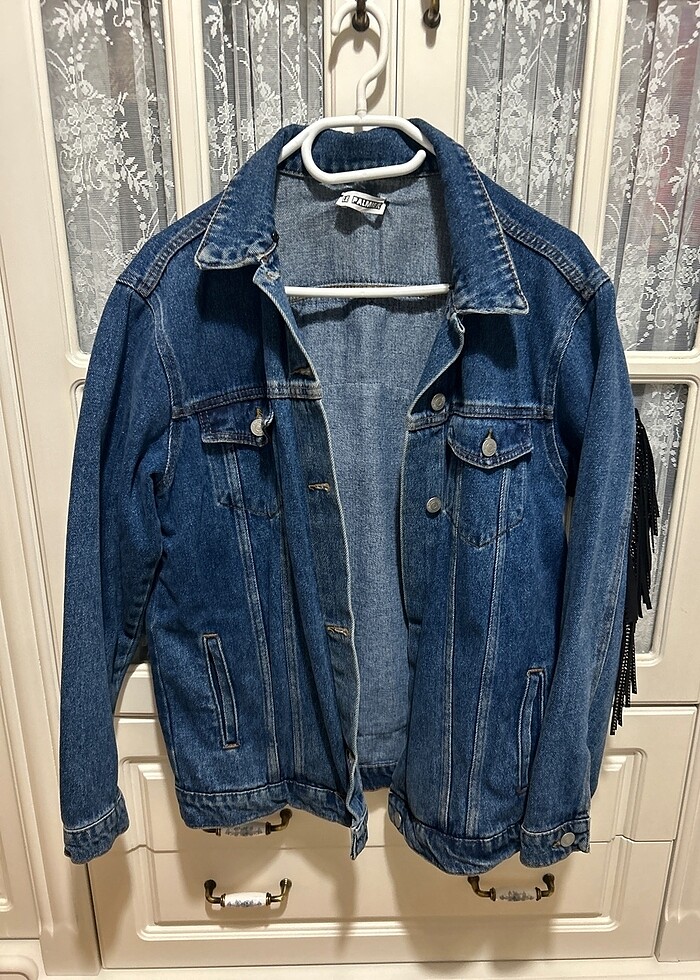 Tasarım kot ceket. 40 bedene kadar uyumludur. Tüy detayı opsiyoneldir. Markası le palmier.