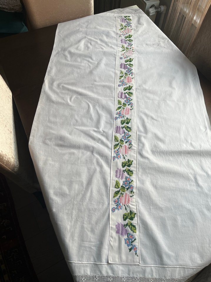İncecik kenar dantelli;Kanaviçe işli patiska kumaşa tasarım örtü;67x133 ölçüsünde sıfır ürün #balkonmasası #çamaşırmakinasıörtüsü #tasarım