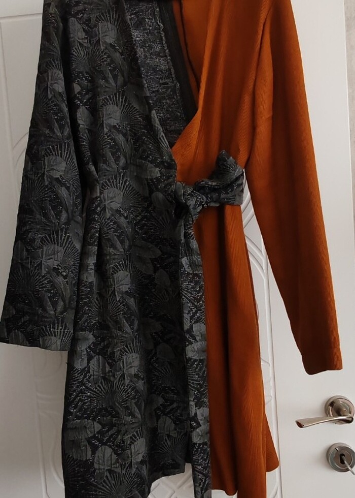 Tasarım bir kıyafettir yandan bağlamalıdır. Herhangi bir deformesi yoktur. Dize kadar uzundur. Özel dikilmiştir