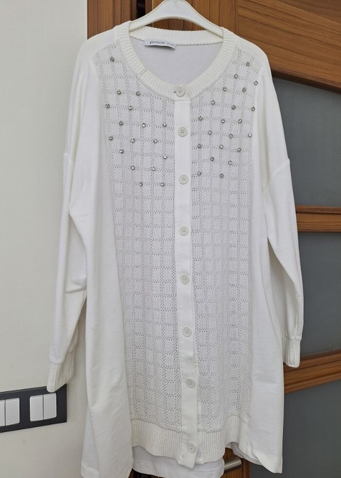 BEYAZ HIRKA ŞIK ÖZEL GÜNLERDEDE GİYE BİLECEYİNİZ İSTER HIRKA OLARAK GİYİN İSTER BULİZ OLARAH HER KIYAFETİN ÜZERİNE GİYEBİLECEYİNİZ HIRTA 1 KERE GİYİLDİ EV GEZMESİNDE BÜYÜK GELDİYİ İÇİN SATIYORUM ÇOKTA BEYENEREK ALMIŞDIM KOL BOYU 46 DÜŞÜK KOLDUR GÖYÜS 60 ÖNDEN BOY 79 ARKADAN BOY.80