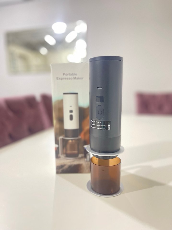taşınabilir espresso makinesi, kahveyi her yerde pratik şekilde demlemenizi sağlar. Kompakt tasarımında servis için bir fincan bulunur. ☕