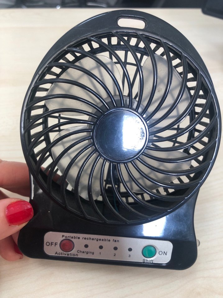 güç ve ayarlanabilir hava akışı için çok kademeli hız ayarı bulunan taşınabilir siyah masaüstü vantilatördür. Basit açma/kapama düğmeleri ve kompakt yapısı vardır. Yüksekliği 13 cm genişliği 10 cm.