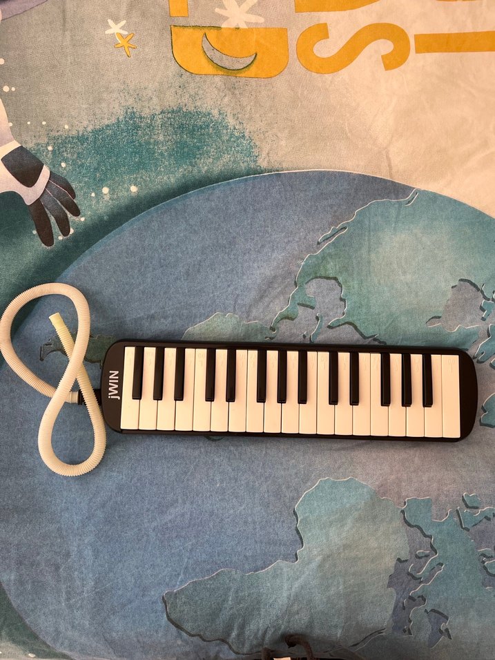 Siyah melodika, esnek beyaz boruyla taşınabilir ve kullanımı kolaydır. Beyaz ve siyah tuşlarıyla müzik çalmak için uygundur.