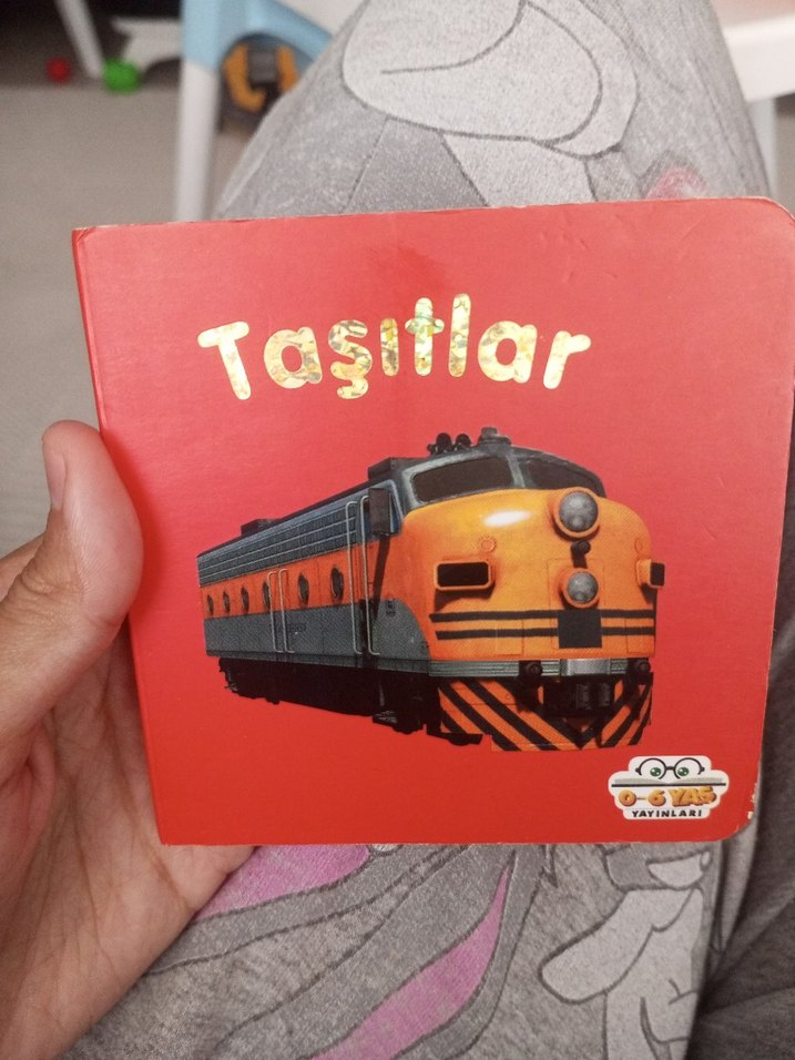 Kapağında tren resmi bulunan 'Taşıtlar' adlı çocuk kitabı. bir çok aracın resmi var tertemiz duruyor