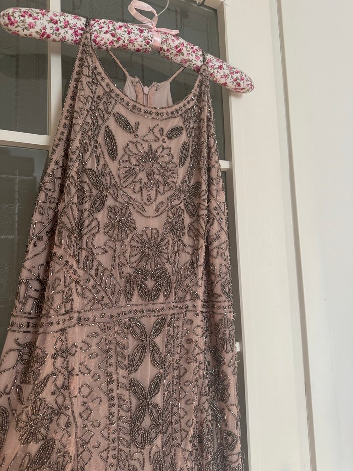 Pudra renkli, full taşlı uzun elbise. Yüksek yakalı, kolsuz ve bol kesim. Düğünler için uygun. M L beden uyumlu. Hiç giyilmedi. #abiye#geceelbisesi