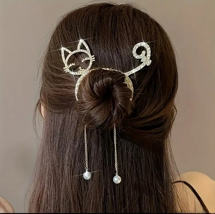 Taşlı, altın renkli, parlak kedi figürlü, sarkıt boncuklu saç tokası. Bohem ve retro tarzlar için çok şık bir aksesuar. YURTDIŞINDAN alındı Yeni, sıfır ürün. 1 adet Kedi Figürlü Taşlı ve İncili Topuz Tokası. Hem günlük hem de özel günlerde, düğünlerde, davetlerde kullanabileceğiniz çok şık bir saç tokası #toka #saçtokası #taşlıtoka #incilitoka #inci #şıktoka #keditoka #kedi #düğüntokası