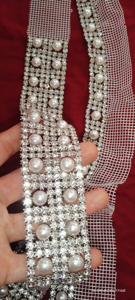 İnci ve taş işlemeli, parlak detaylara sahip kadın el zinciri. Düğün ve rock punk tarzları için uygundur. ✨