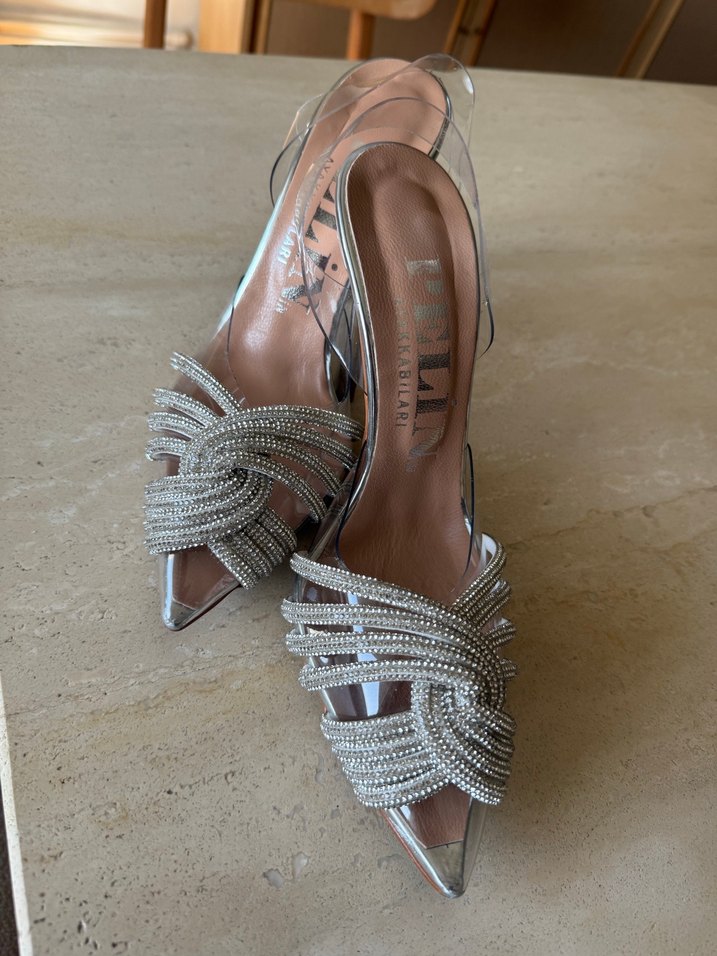 Pelinin ayakkabıları, (güncel fiyatının çok daha uygununa) 38 numara nişan ve düğünde kullanılabilir topuklu. Çok şık duruyor fotoğraflarda, sadece bir kez nişanımda giydim özellikle ince ayaklarda çok şık duruyor.