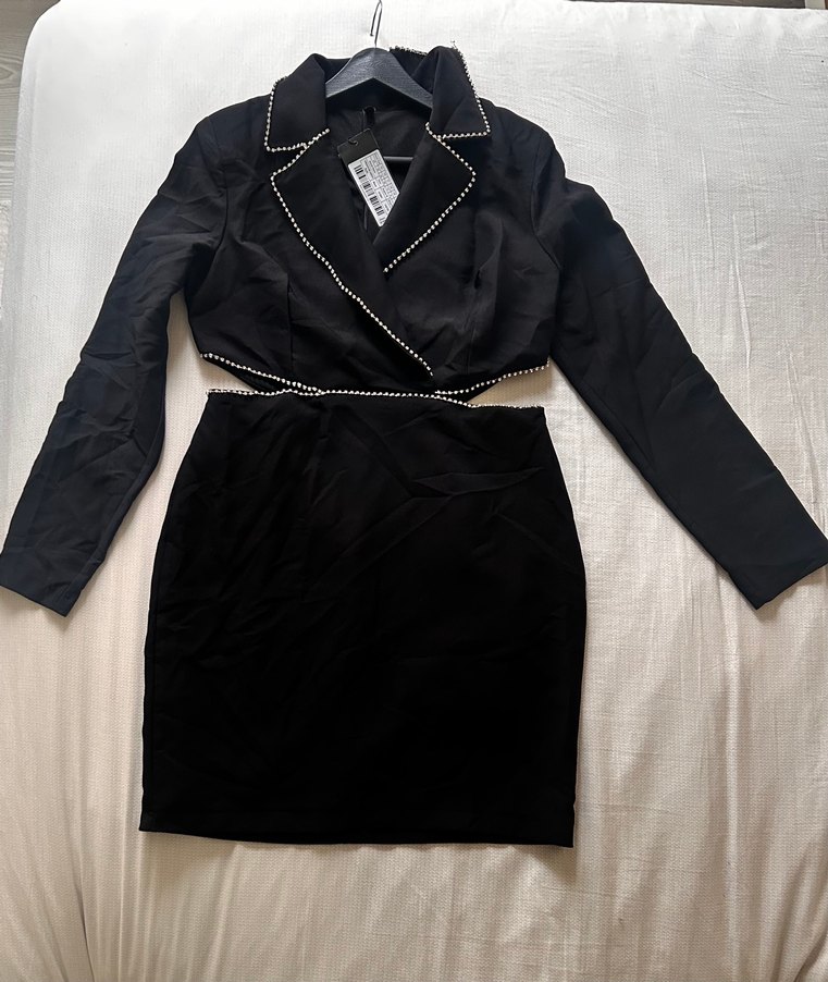 Taşlı , bel dekolteli Siyah normal boy Kadın Elbise