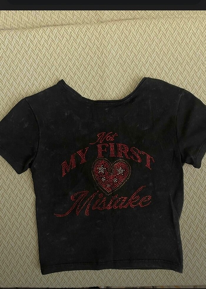 t-shirt Bershka hiç kullanılmadı üstü taşlı crop sırt dekolteli